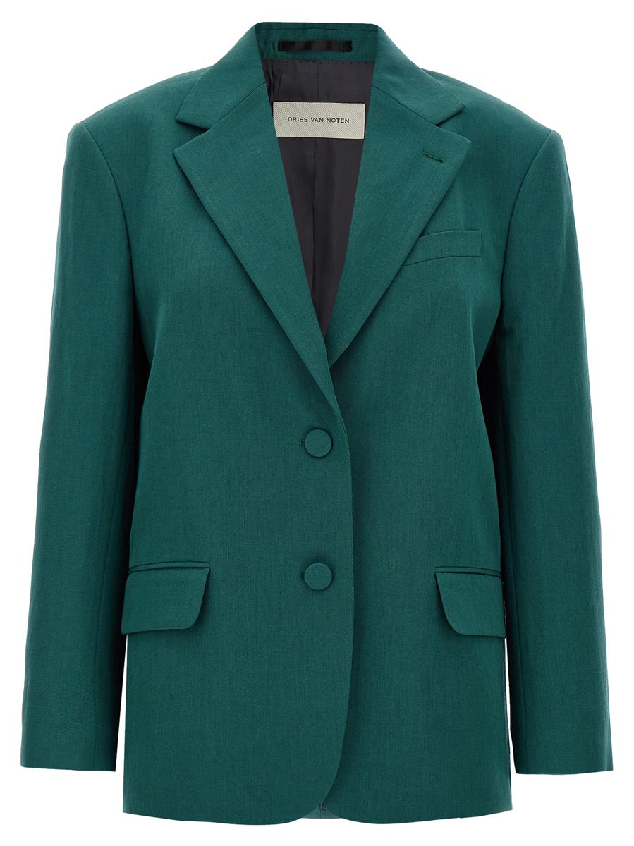 'Birdy' single-breasted wool blend blazer with front button closure, mirror lapels, pockets, viscose lining, long sleeves, structural shoulders, back split