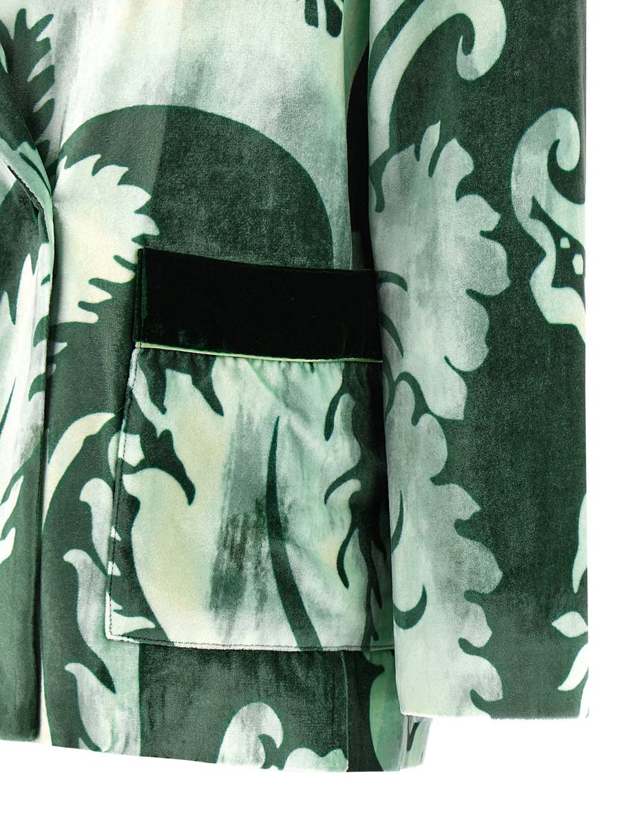 'Mereope' all-over double-breasted velvet blazer with front button closure, mirror lapels, patch pockets, padded shoulders, long sleeves, lining
