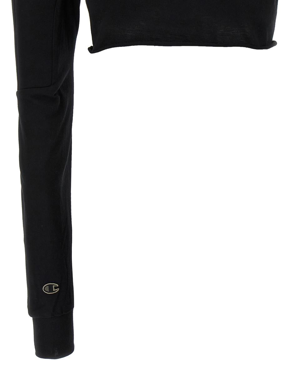 Champion x Rick Owens cotton sweater with top inserts in scuba fabric, crop model, crew neck, long sleeves with cuffs, structured shoulder strap, garment with raw cut hem. SUSTAINABLE: This product is made of organic cotton