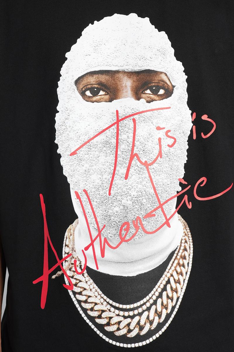 T-Shirt in black cotton, round neck, short sleeves, logo print on front, straight hem, 100% cotton, Made in Italy, the models is 1.91 and wears size L