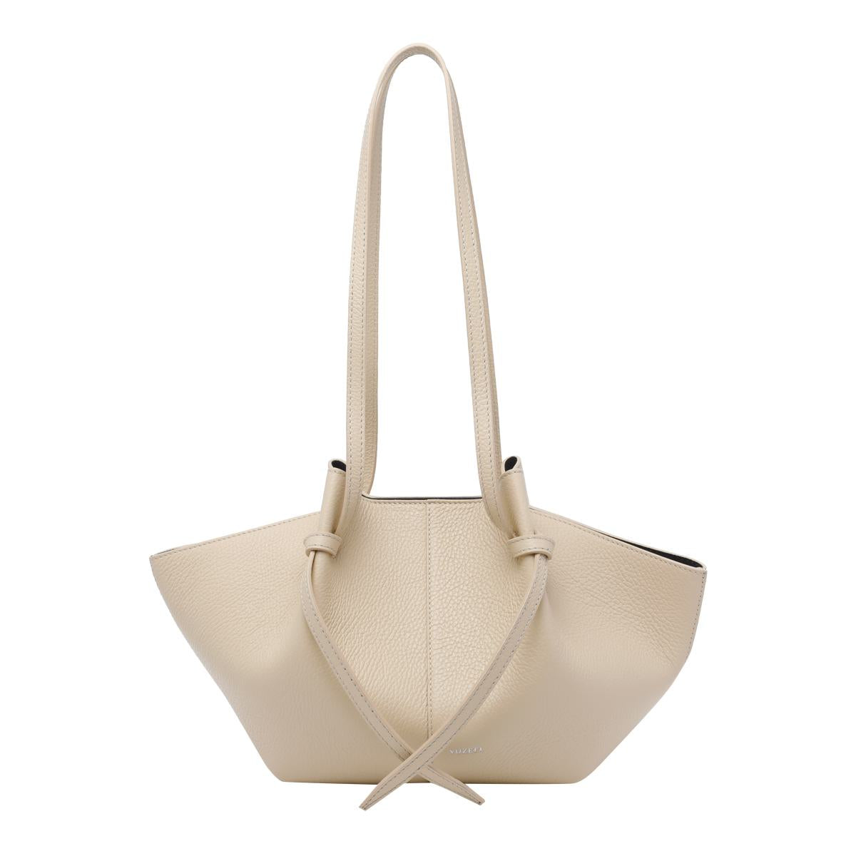 Yuzefi White Mochi Shoulder Bag, Magnetic Closure, 2 Shoulder Straps, Leather Upper, 21x38x19 cm