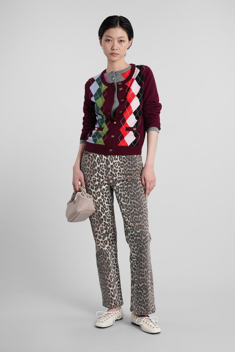 Jeans in Animalier cotton, frontal closure with zip and buttons, five pockets, back patch logo, animalier pattern, 99% cotton, 1% elastan, Made in Turkey