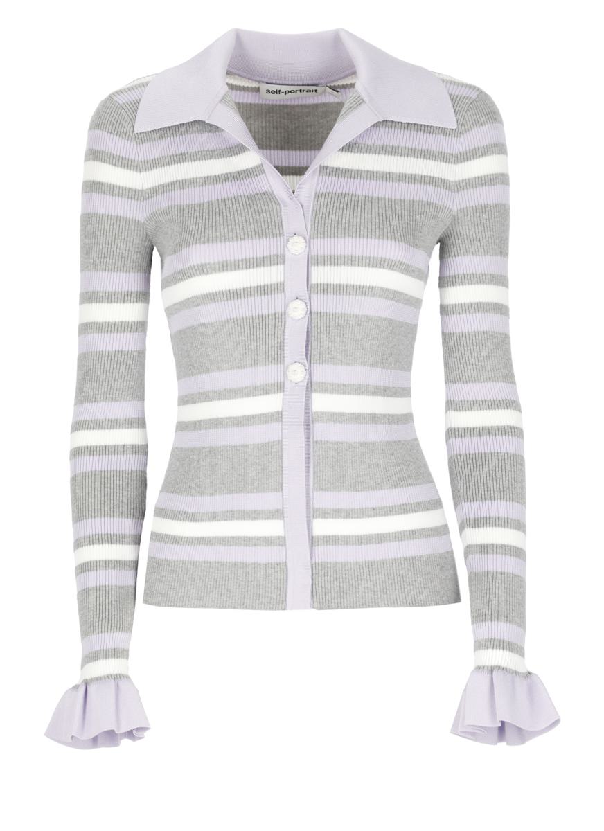 - Grey Self Portrait shirt for woman - Collar - Long sleeves - Front buttons fasteninf - All-over striped pattern