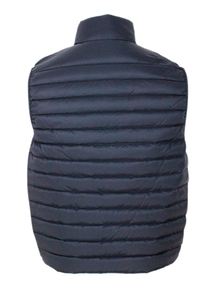 Sleeveless vest in real goose down with zip closure and logo writing on the chest