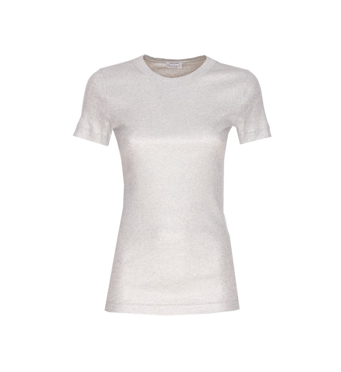 Brunello Cucinelli Silver T-Shirt, Round Neck, Metalized Model, Monile Logo On Back, US SIZE