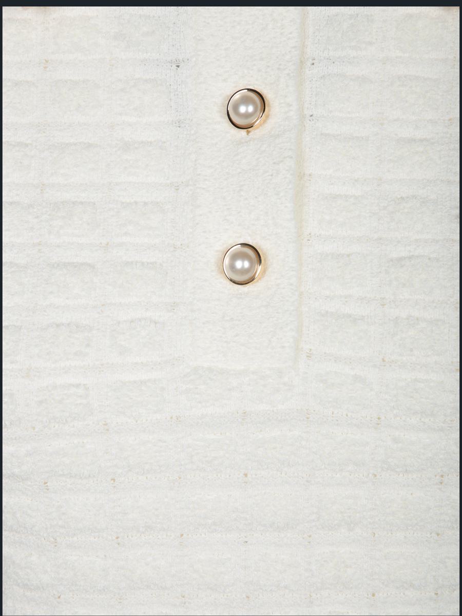 Short-sleeved bouclà fabric polo. Contrasting collar with green and pink stripes. Front closure with pearlescent buttons.. This Casablanca white bouclà polo merges refinement with comfort. The sporty design is enhanced with a striped detail collar and sophisticated pearlescent button closure