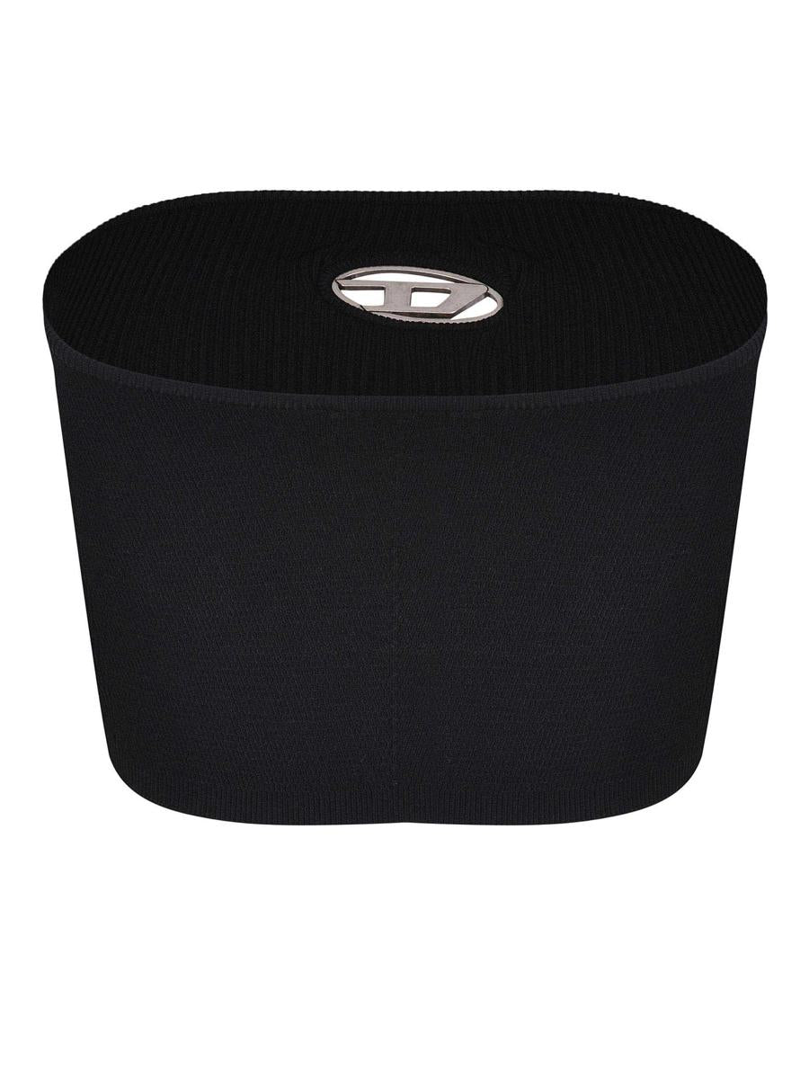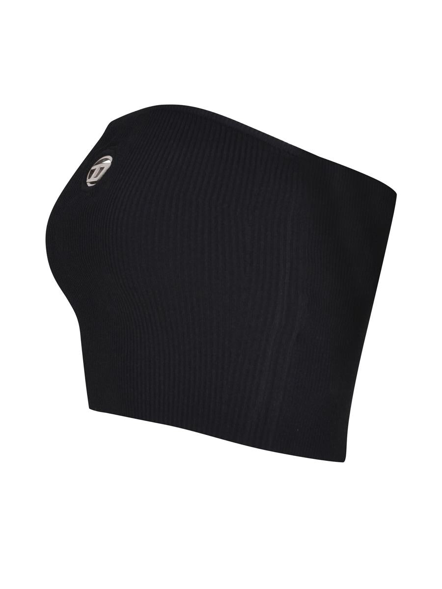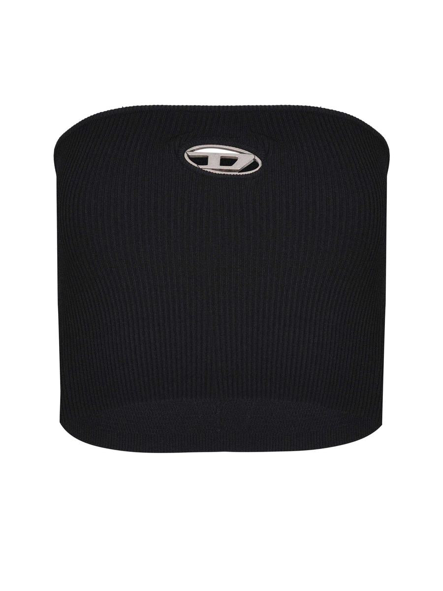 Top Diesel made of black viscose. Ribbed and stretchy. Strapless. Metal cut-out logo on the front in silver color.