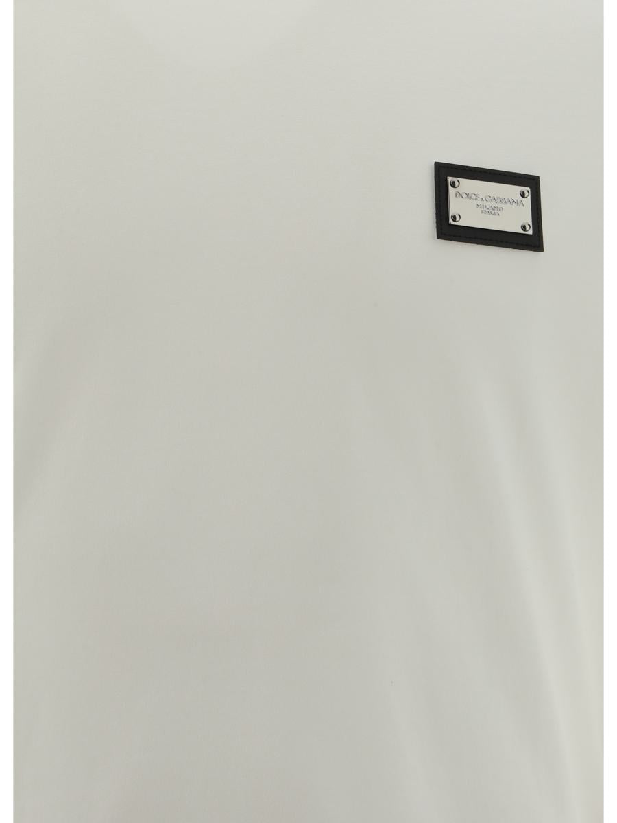 COTTON T-SHIRT FROM DOLCE&GABBANA, RIBBED CREW NECK, METAL HARDWARE PLAQUE WITH ICONIC BRAND D&G MONOGRAM ENGRAVED AND APPLIED AT BACK, OVERSIZE FIT.