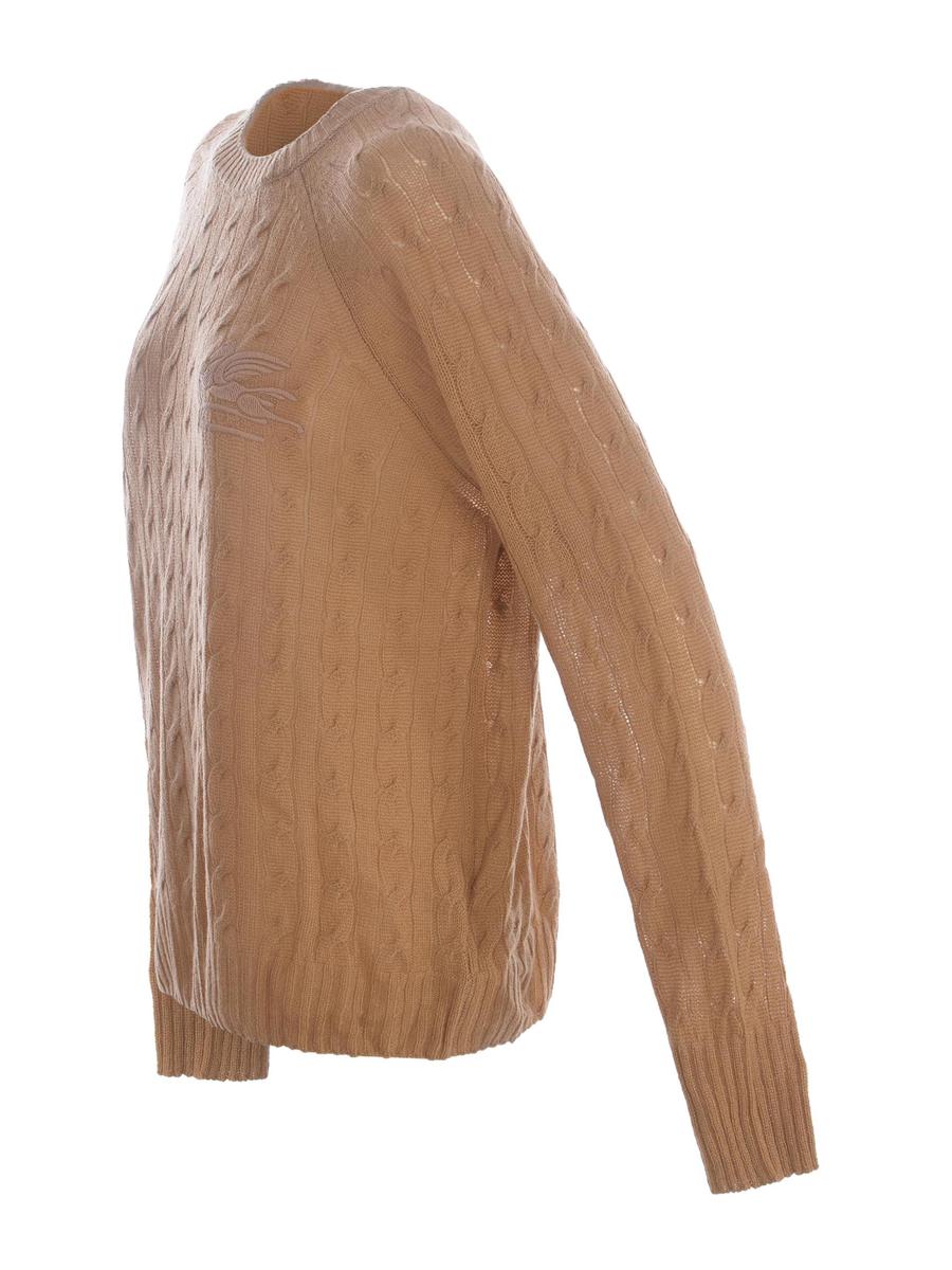 Sweater Etro "Pegaso" in Beige cashmere. Braided work. Ribbed crew neck. Long sleeves. "ETRO and Pegaso" logo embroidered tone on tone on the chest. Comfortable fit.