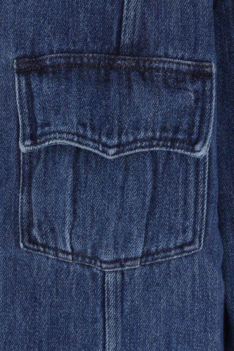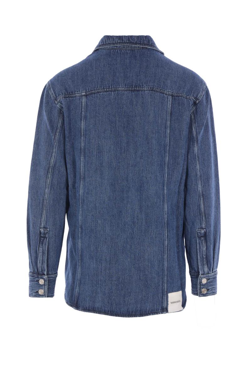 Shirt by Namacheko made of cotton and linen denim. Features a classic collar, metal button closure, flap pockets, long sleeves with buttoned cuffs, and a slightly rounded hem.