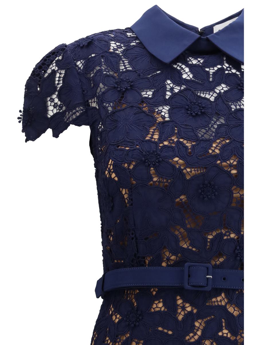 SELF-PORTRAIT'S GUIPURE LACE MIDI DRESS INTERPRETS TIMELESS ELEGANCE WITH A MODERN, FEMININE TWIST. THE BRAND'S SIGNATURE GUIPURE LACE FABRICATION DEFINES A FIT-AND-FLARE SILHOUETTE ENHANCED BY A DYNAMIC, FLOWING HEMLINE. THE LAPEL COLLAR LENDS A TAILORED ACCENT, WHILE THE TON SUR TON BELT DELICATELY EMPHASIZES THE WAIST. COMPLETED WITH INVISIBLE BACK ZIPPER AND REMOVABLE PETTICOAT, IT IS A REFINED DRESS, PERFECT TO WEAR WITH STILETTO HEELS FOR A SPECIAL OCCASION.