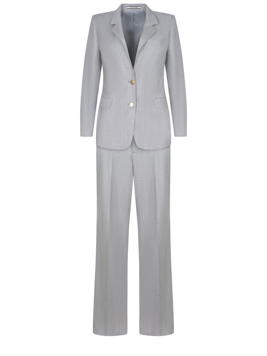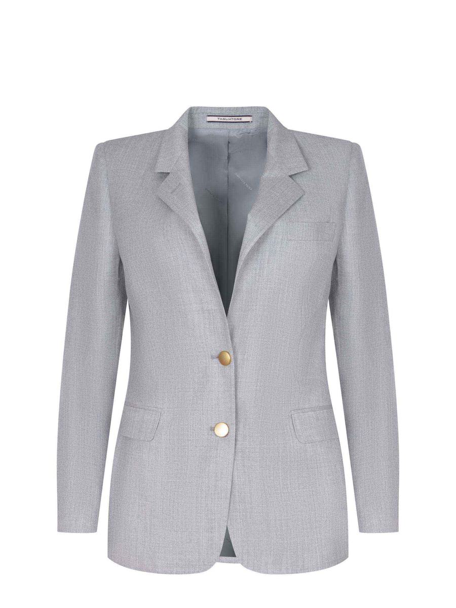 Taillur Tagliatore "T-Parigi" in a stretch virgin wool blend in grey. Double-breasted stretch wool jacket in grey. Notched lapel. Long sleeves. Cuffs with two buttons. Breast pocket. Double-breasted closure with two buttons. Side flap pockets. Back vent. High-waisted trousers. Hook and zip closure. Side pockets. Welt pockets at the back.
