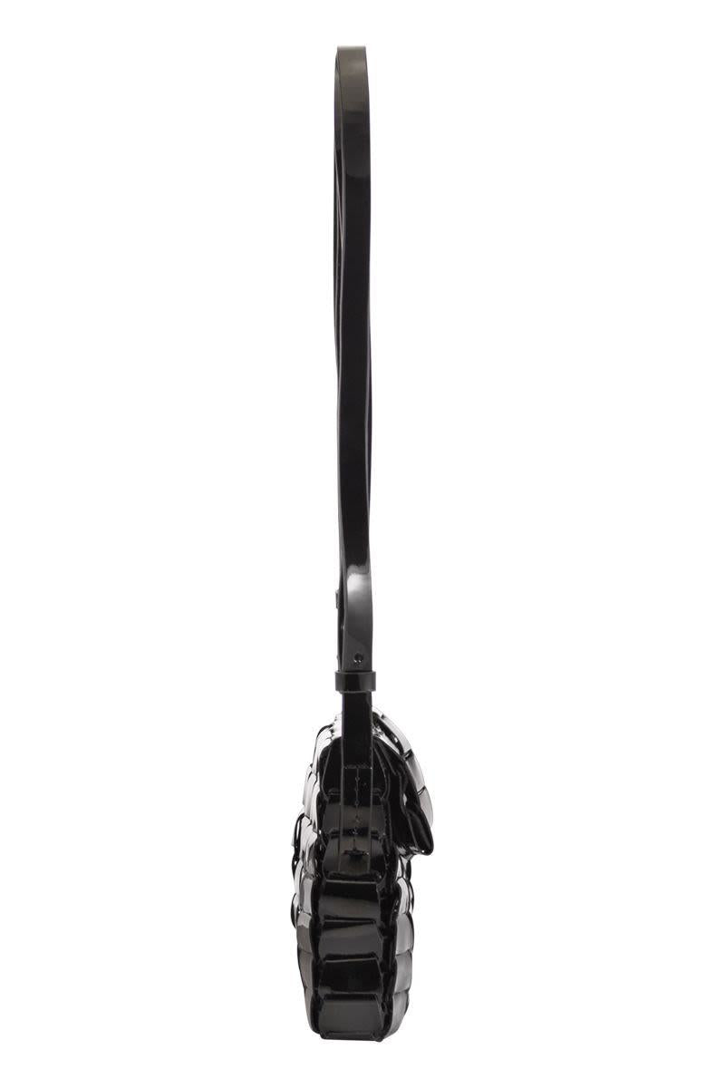 The Link Pochette bag is made up of squares of woven leather, creating a practical yet elegant shape. Remaining faithful to traditional basket weaving techniques, the Link Pochette is unlined and has a closed top. - Flap closure - Unlined - Adjustable shoulder strap DESIGNER ID: 8962P PATENT BLACK