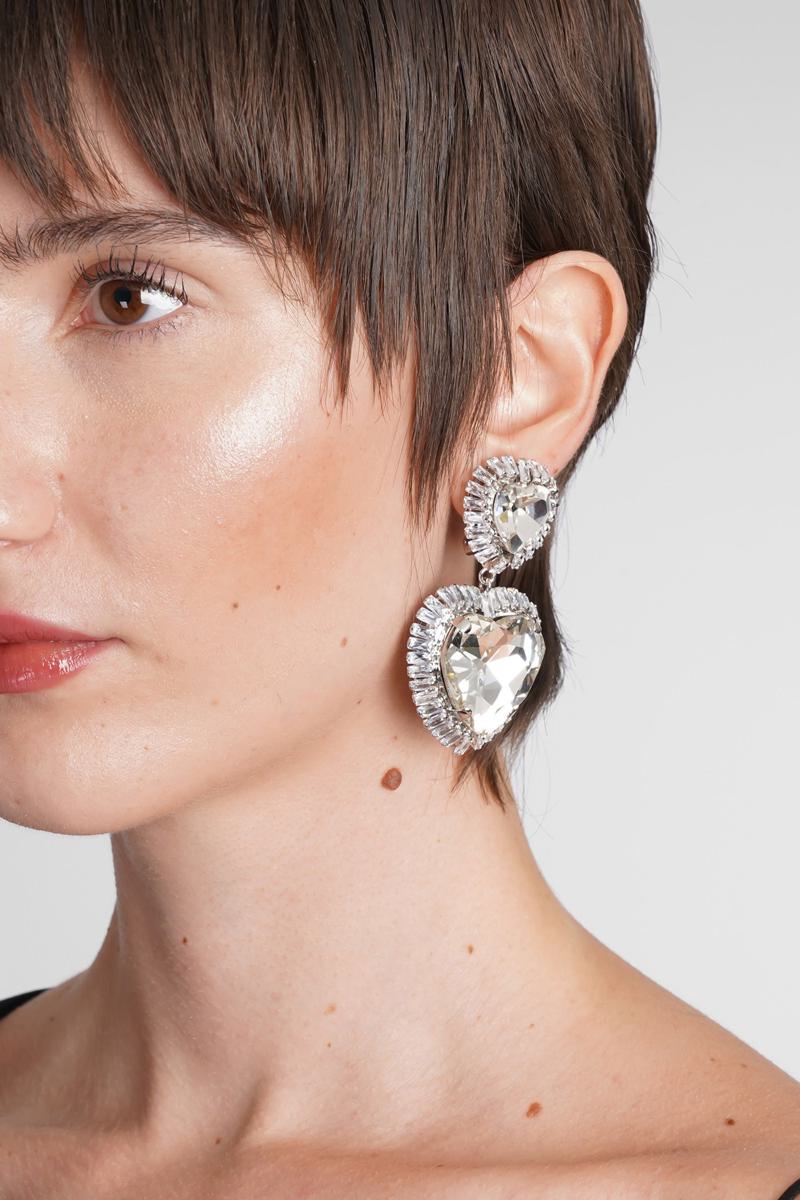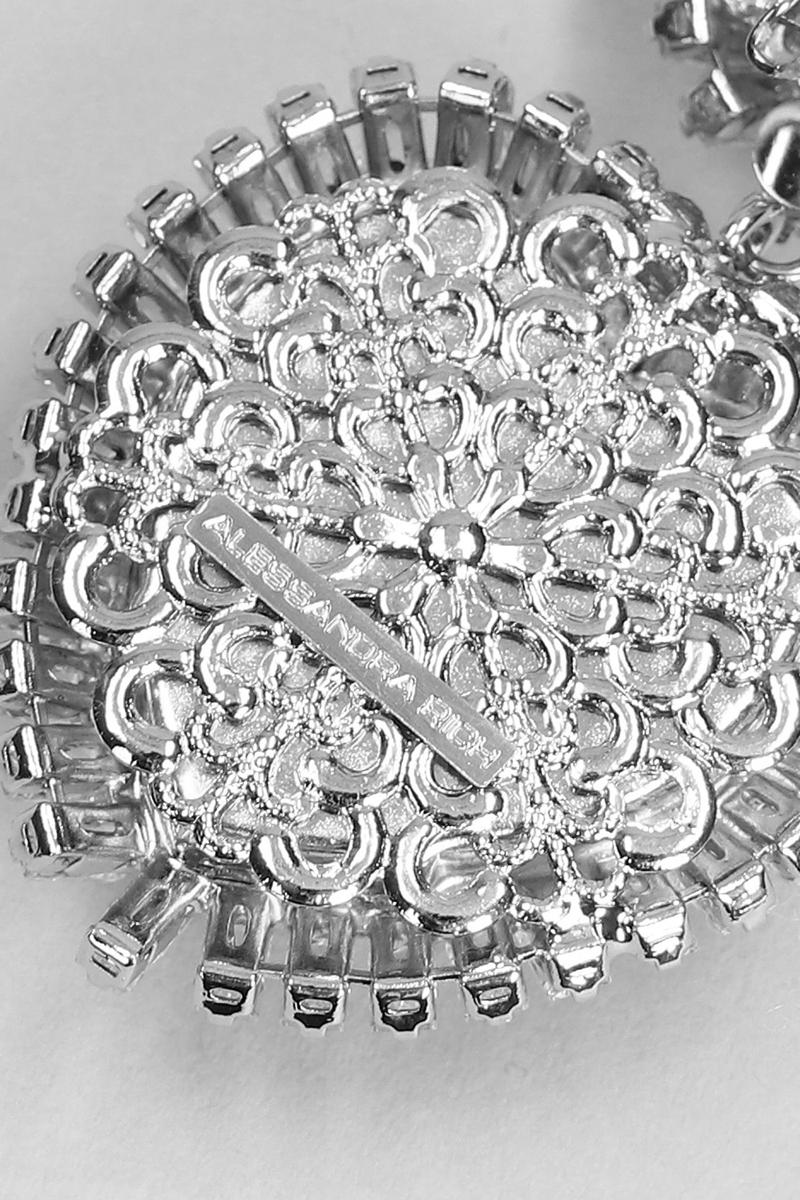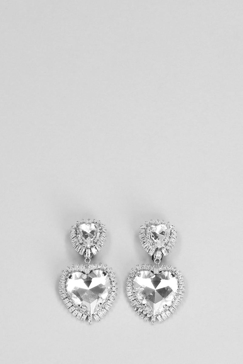 in silver metal alloy, heart design, suspended pendant, studs detail, silver hardware, Made in Italy