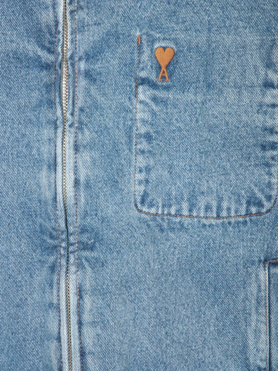 Explore youthful styling with the Logo ADC Blue Denim Jacket by AMI PARIS. Crafted from high-quality denim, this jacket is enhanced with embossed details and a vibrant logo pocket for a touch of urban sophistication.