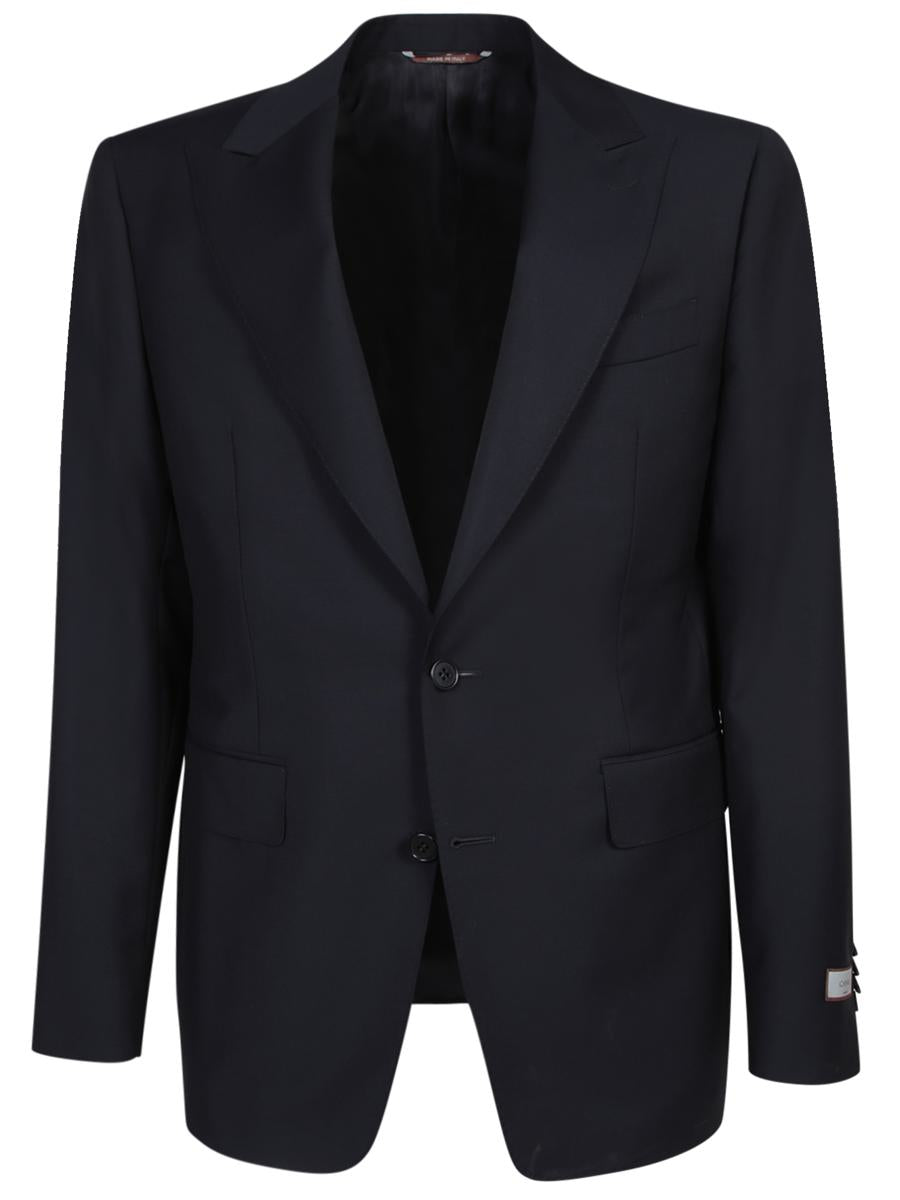 Exude sophistication with this Canali blue mohair suit, featuring an impeccably tailored silhouette enriched by a smooth lining that ensures comfort and timeless style.