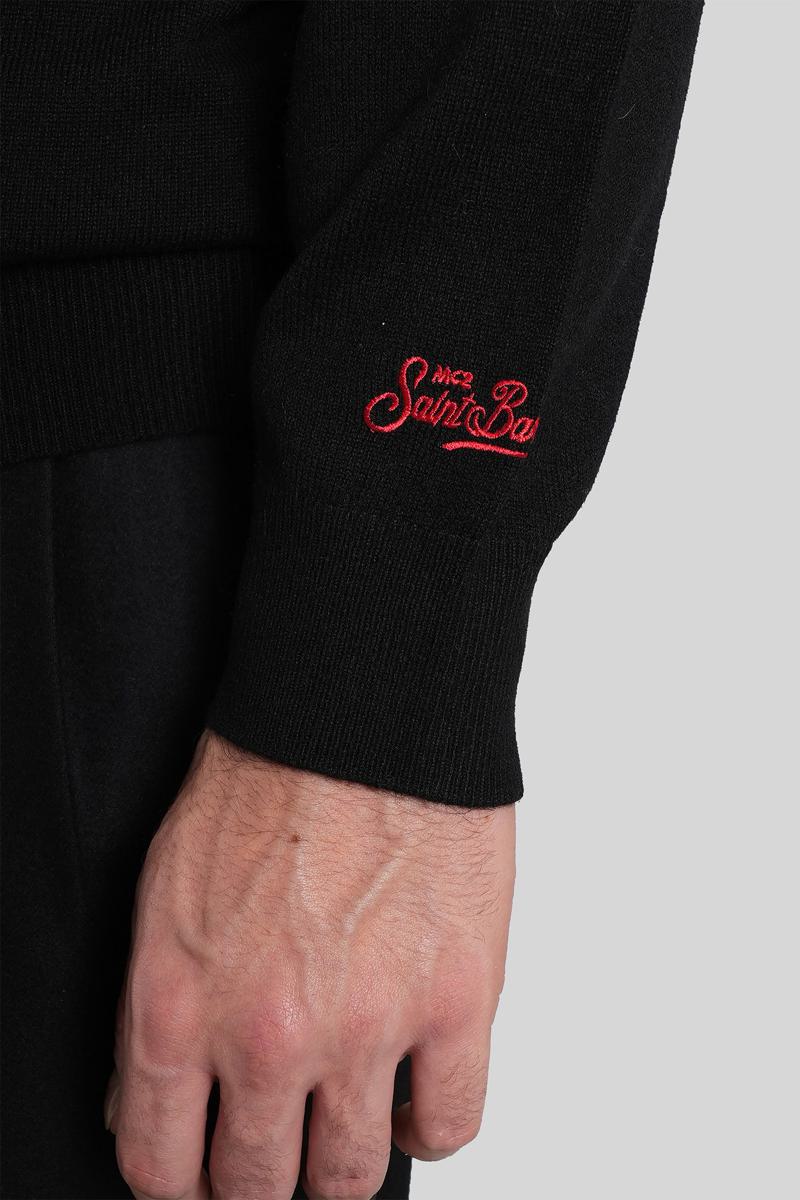 Heron light embry Knitwear in black wool, round neck, long sleeves, embroidery logo on chest, ribbed cuffs and bottom, 100% wool, Made in Prc, the models is 1.91 and wears size L