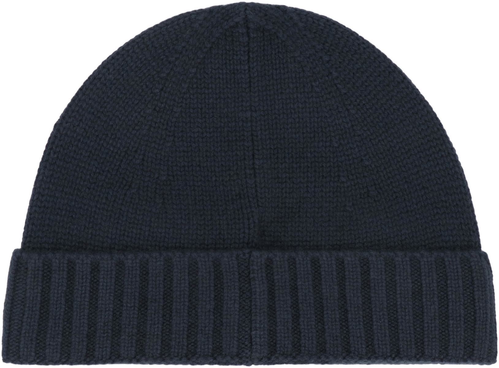 Hat made of pure cashmere with ribbed cuff and monochrome Compass logo patch on the front.