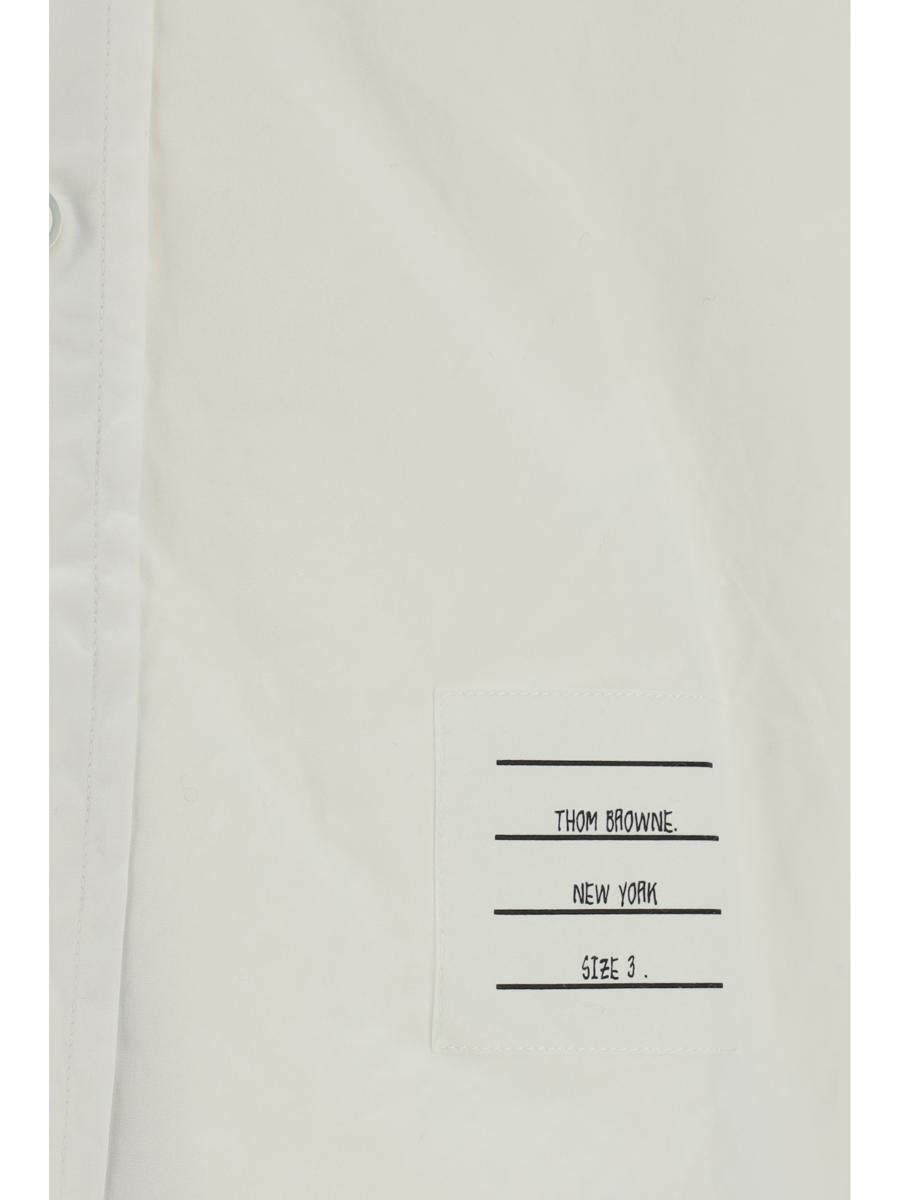 COTTON SHIRT FROM THOM BROWNE, CLASSIC COLLAR, FRONT BUTTON CLOSURE, CONTRASTING EMBROIDERED BRAND ICONIC SIGNATURE PATCH ON FRONT, ADJUSTABLE BUTTON CUFFS, REGULAR FIT.