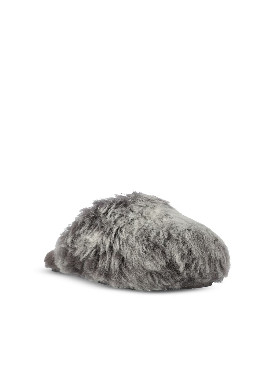 UGG's Scuffette Chalet slippers combine comfort and sophistication in a cozy, sophisticated design. Made entirely of natural sheepskin, they feature a wrap-around construction with a soft fur interior and exposed shearling piping. The lightweight non-slip rubber sole makes them ideal for both indoor and short outings, offering warmth and softness in every step. - Shearling tipped upper - Color: gray - Shearling lining (17 mm) - Shearling insole (17 mm) - Molded rubber outsole - Textile edging made from recycled polyester fibers (100%) - Woven label with UGG® logo on insole, embossed hot stamped UGG® logo - Box included - Item number: 1173591CHRC