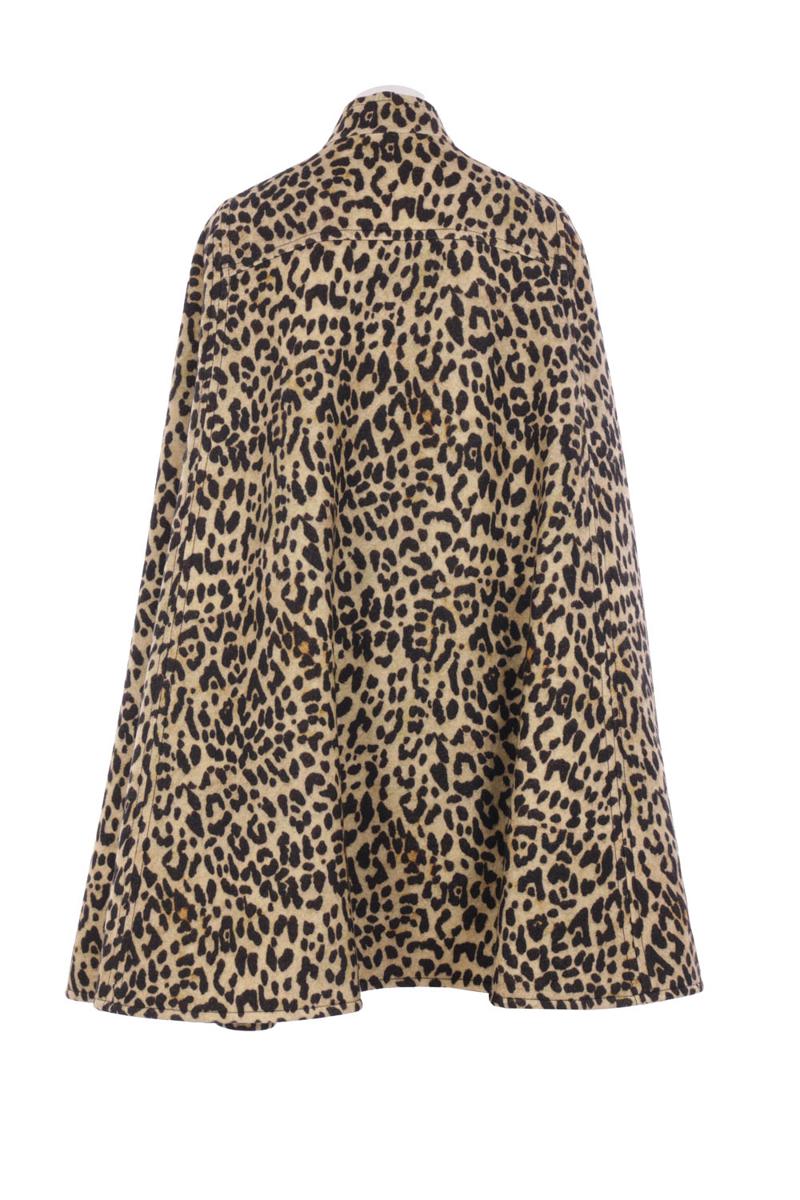 Valentino Garavani cape crafted from wool cloth with a Fauve Éclat Animalier print. Featuring a mandarin collar, front button closure, welt pockets with V Gold detailing, armhole openings, a rounded hem, and a fully lined interior.