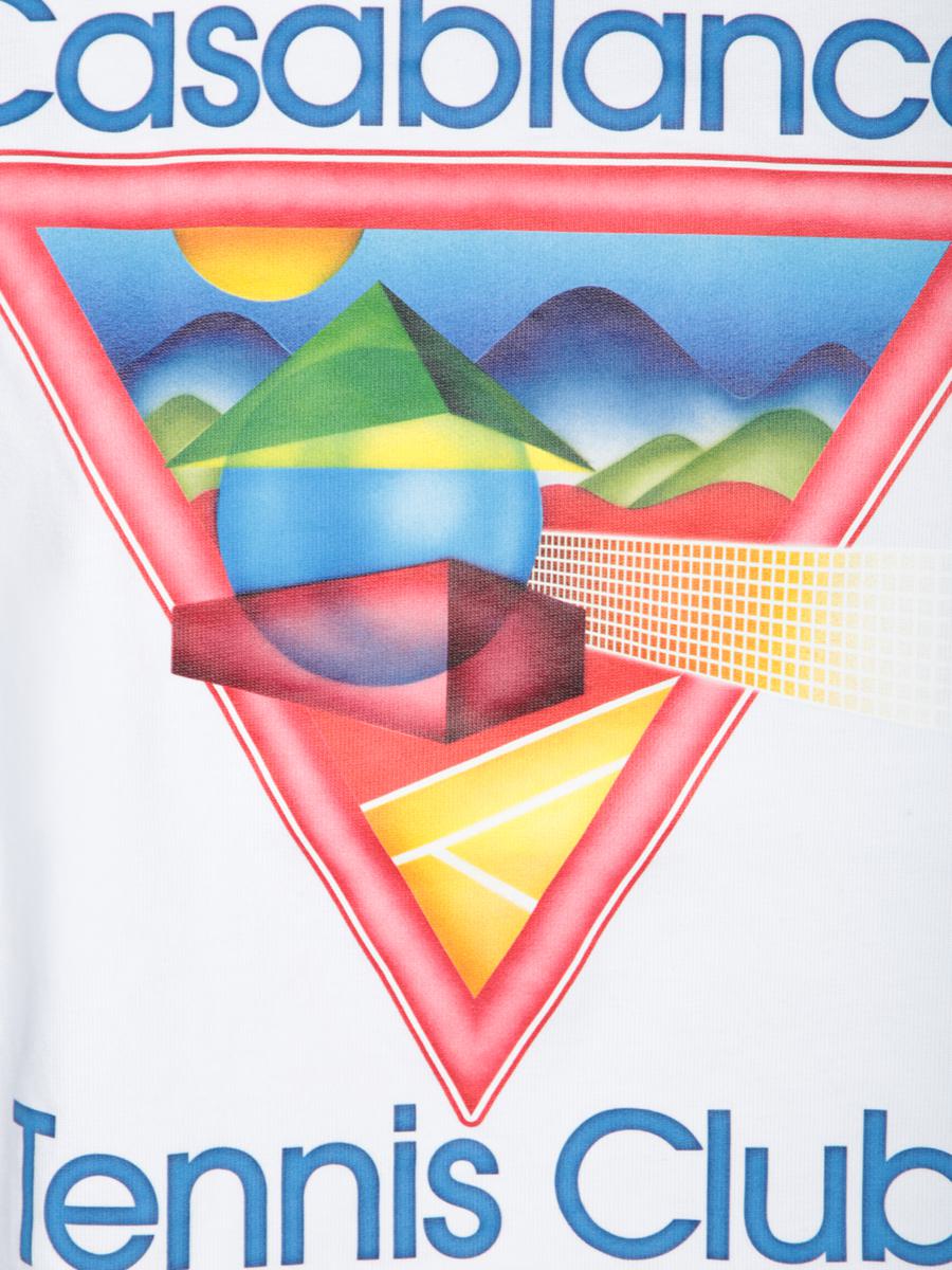 This Casablanca T-shirt channels retro tennis style with a vibrant geometric and mountain print. Made from soft cotton, it promises comfort and style with every wear.