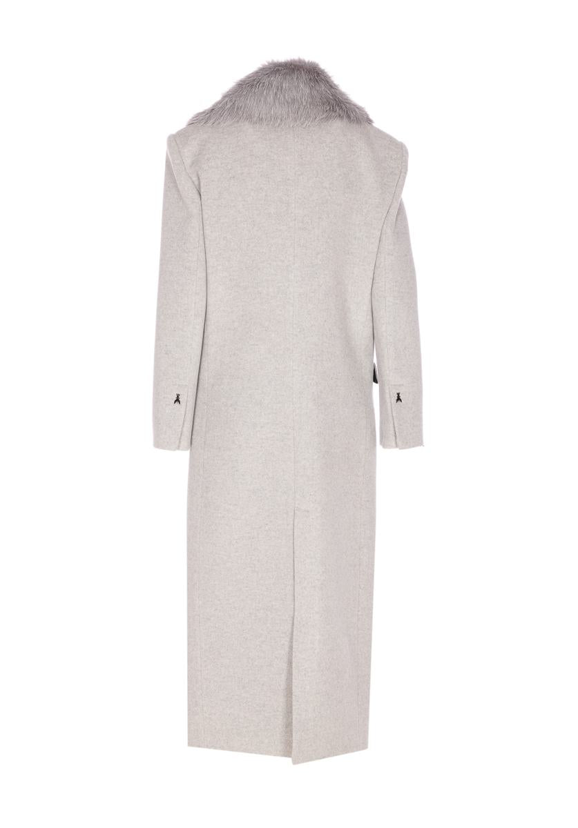 Patrizia Pepe Grey Coat With Double Breasted Buttons Closure, Removable Faux Fur Detail, Pockets, Long Sleeves, EU SIZE (IT)