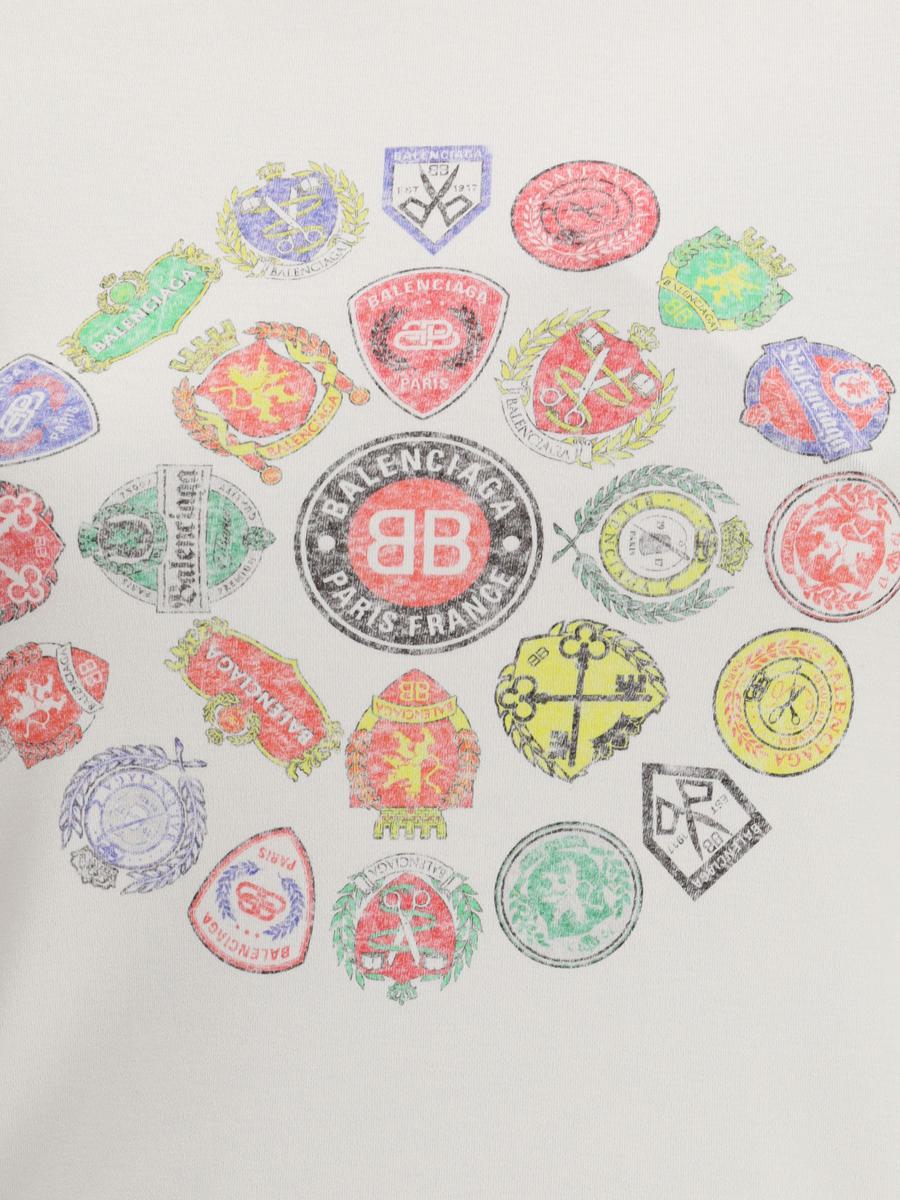 BALENCIAGA'S GRAPHIC LOGO CREWNECK T-SHIRT EXPRESSES THE MINIMALIST AND CONTEMPORARY ESSENCE OF THE FASHION HOUSE. MADE FROM SOFT COTTON, IT FEATURES SHORT SLEEVES AND A CREW NECKLINE THAT DEFINE ITS CLEAN, VERSATILE SILHOUETTE. THE GRAPHIC LOGO PRINTED ON THE FRONT ADDS A DISTINCTIVE DETAIL, TRANSFORMING AN ESSENTIAL GARMENT INTO A SYMBOL OF URBAN AND SOPHISTICATED STYLE.