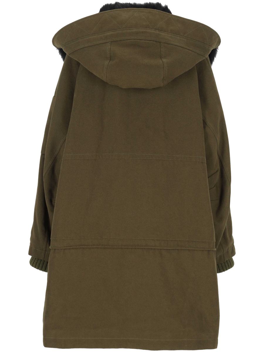 green fur trim classic hood front zip closure flap pockets sleeve zip pocket