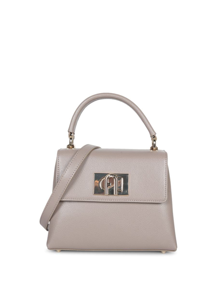 Crafted from fine saffiano leather, this elegant Furla bag features a sophisticated stucco color. Equipped with a signature front gold-tone lock, it offers versatility with a removable shoulder strap.