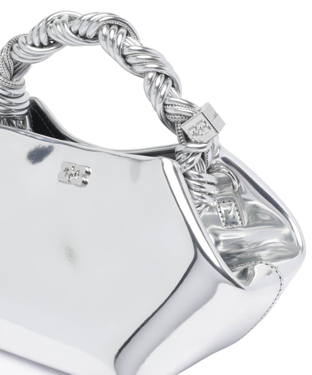 Ganni Silver Small Ganni Bou Handbag, Magnetic Closure, 2 Sections, 1 Handle, Removable And Adaptable Strap, Mirror Effect, 15x29x16,5 cm