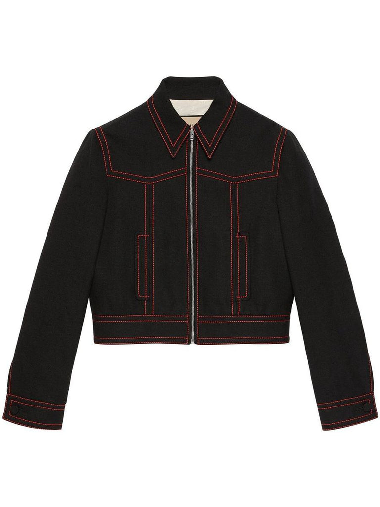 Black, red, frontal closure with zip, long sleeves, two lateral pockets This piece fits true to size. We recommend you get your regular size