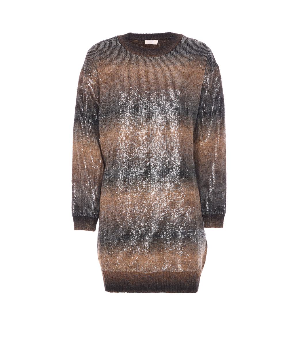 Liu Jo Brown Sequins Sweater, Crewneck, Long Sleeves, Midi Model, US SIZE