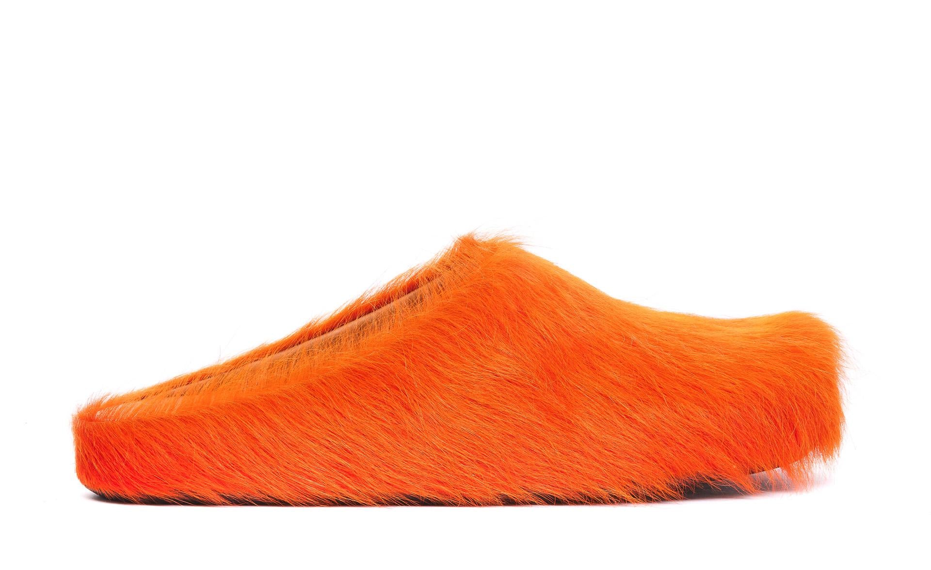 Marni Orange Fussbett Sabot, Leather Upper, Slip On, Round Toe, Long Calf Hair Details, EU SIZE (IT)