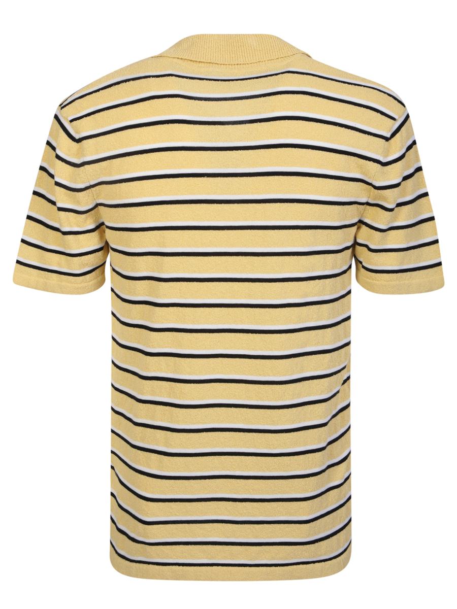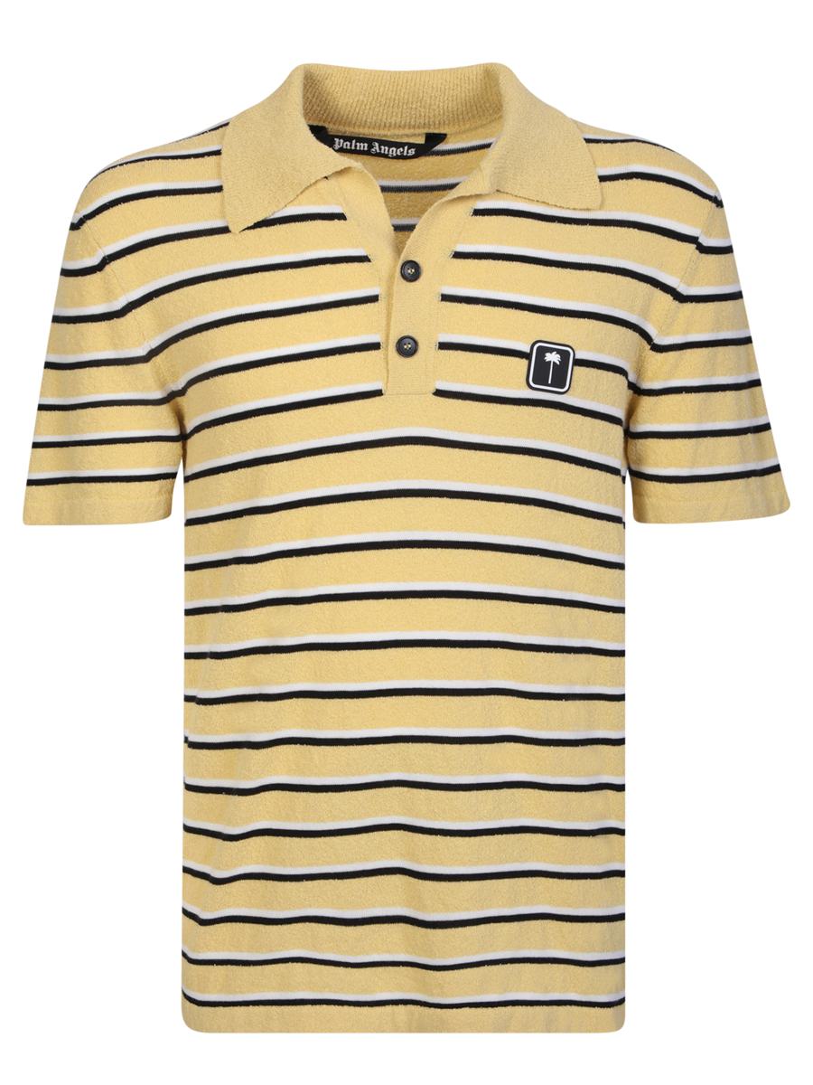Yellow cotton terry polo shirt with all-over stripe pattern and logo patch on chest by Palm Angels