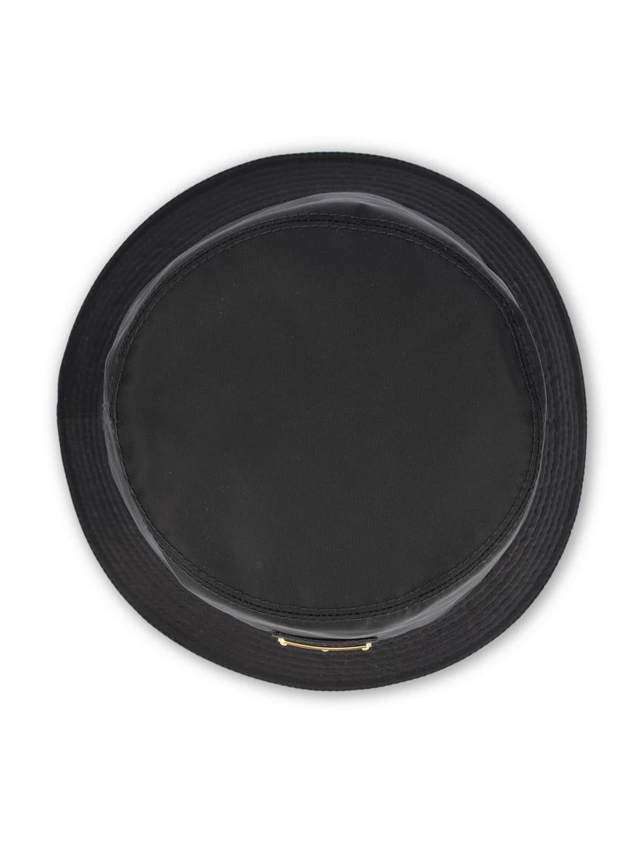 Prada's Re-Nylon fisherman hat represents an icon of contemporary style. Made of recycled polyamide, an innovative material obtained from the recovery and regeneration of ocean plastic, it features a classic silhouette and the distinctive enameled triangle logo on the front. An essential accessory that combines minimalist aesthetics and a commitment to sustainability. - Material: 100% polyamide - Color: black - Cotton lining - Triangle logo applique on front - Dust bag - Item code: 1HC1372DMIF0002