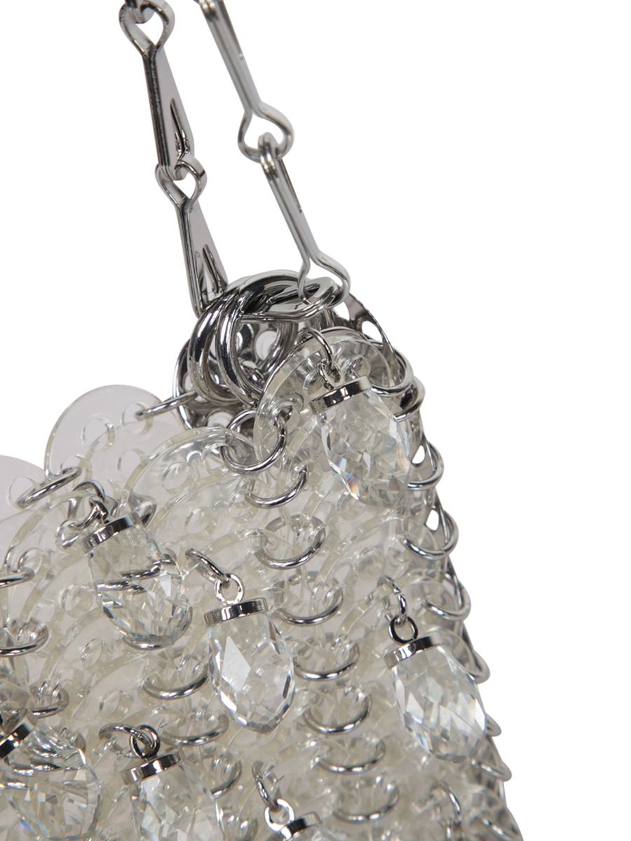 Iconically reimagined by Paco Rabanne, the '1969 Mini Pendants Silver Bag' merges luxury and innovation, with pendants adding a gentle sway and a touch of exclusivity.