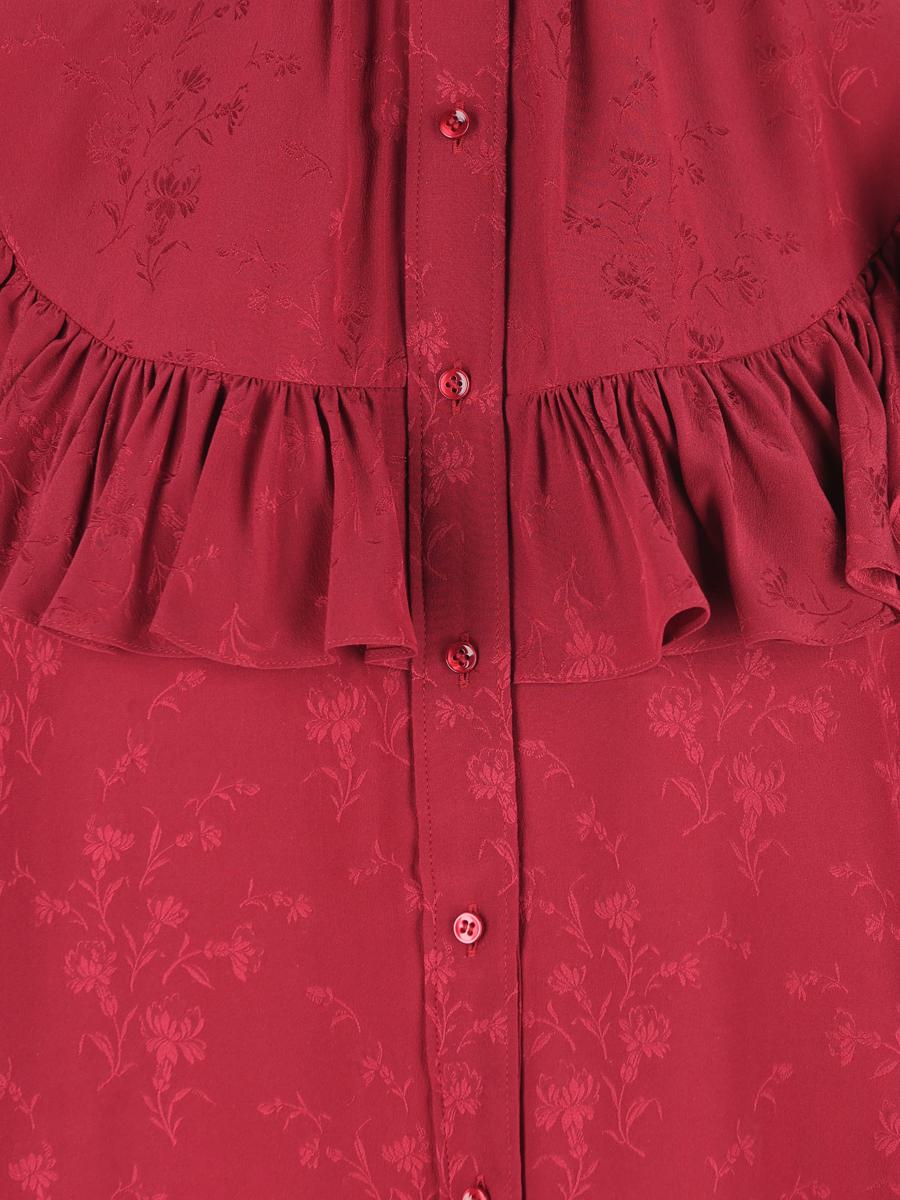 This Saint Laurent signature shirt expresses decisive elegance through the lightness and natural sheen of silk. The Western-inspired cut is reinterpreted in a sophisticated key, for a garment that combines fluidity, character and sophistication. Perfect to wear with both denim and under structured jackets. - Material: 100% silk - Color: red - Tone-on-tone embroidered floral motif - Long sleeves finished with wide gathered cuffs - Wide, distinctive ruffle running the length of the shirt - Front button closure - Made in Italy - Item code: 831783Y4K356067