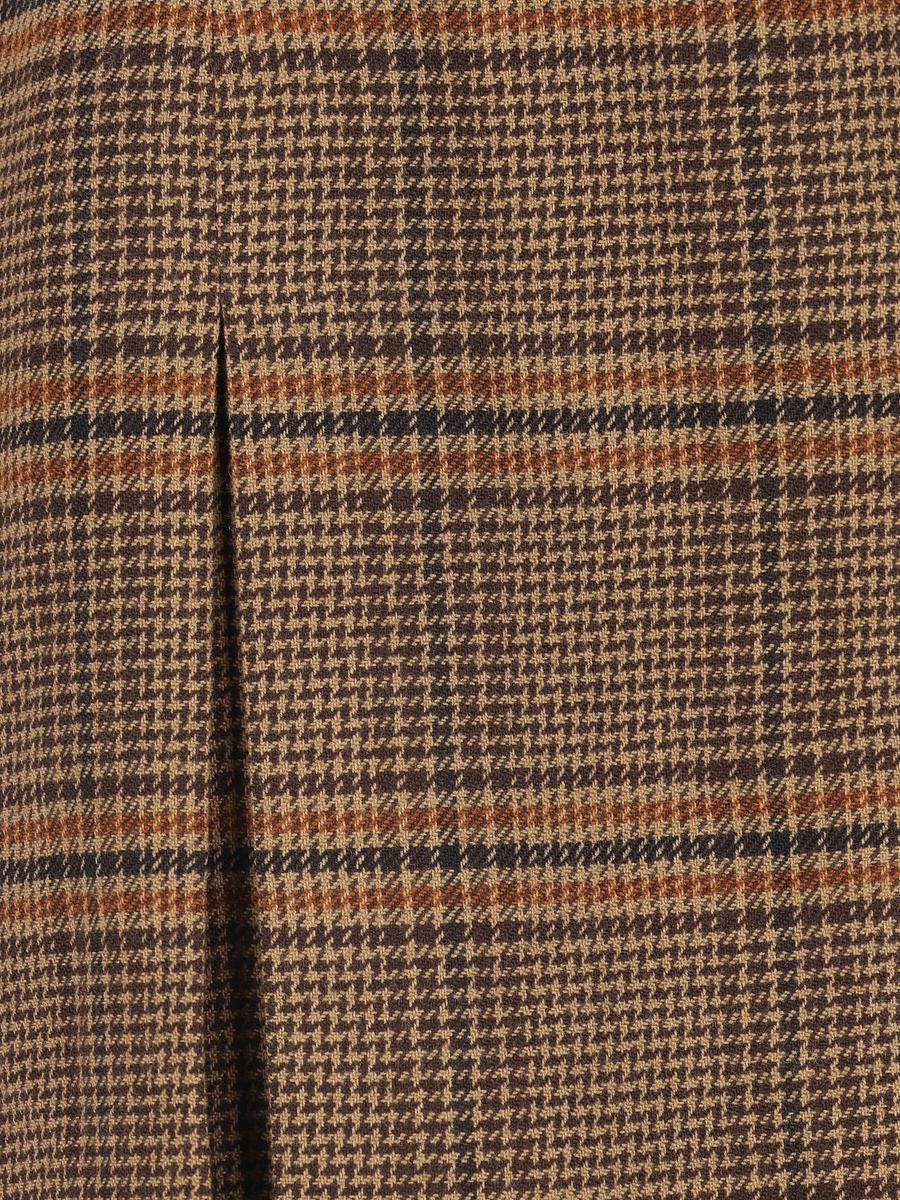 Saint Laurent's midi skirt elegantly interprets the classic Prince of Wales pattern, enriching it with fine quality yarns and an essential silhouette. Made of wool and cashmere, it features a structured yet feminine silhouette with a wrap cut and side closure. The graphic design in neutral tones adds a sophisticated note to a garment designed for formal, urban and timeless looks. - Material: 90% virgin wool, 10% cashmere - Color: brown - Silk lining - Concealed side pockets - Concealed side zipper closure - Made in Italy - Item code: 831068Y9I702849
