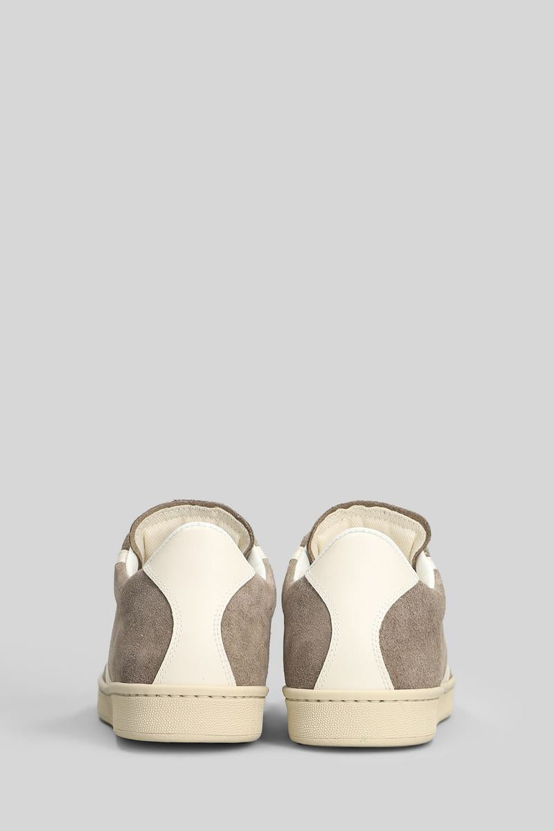 Tournament Sneakers in taupe suede, patch logo on tongue, laces, almond toe, side logo print, rubber outsole, leather insert detail, suede upper, 100% leather, Made in Italy