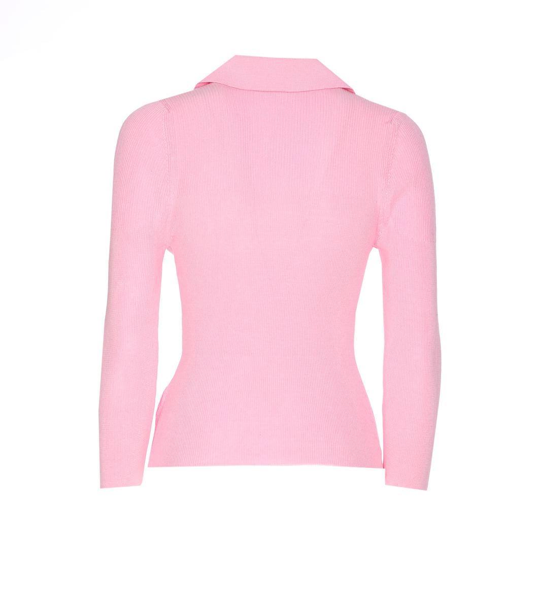 Vivienne Westwood Pink Marina Polo, V-Neckline, Embroidered Orb Logo, Long Sleeves, US SIZE