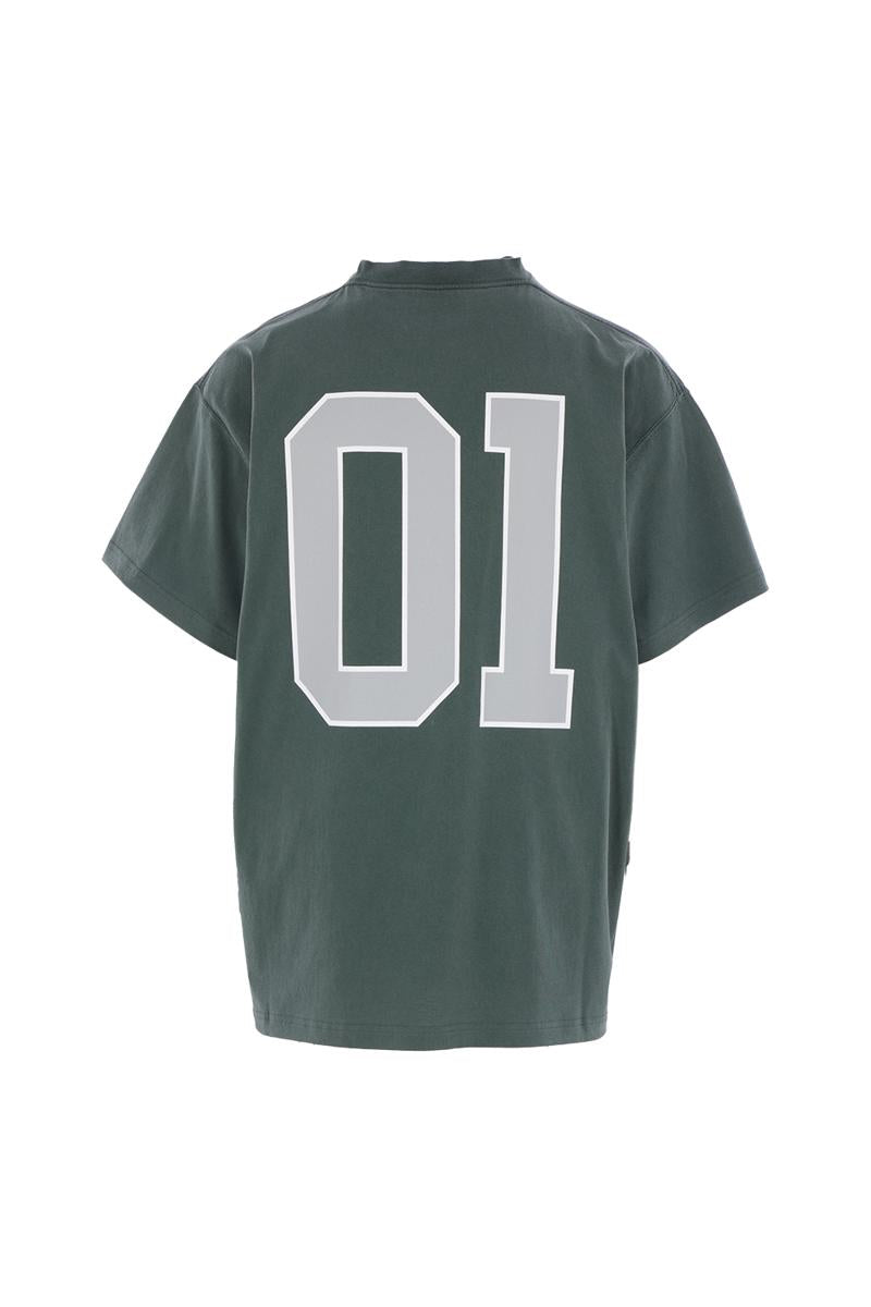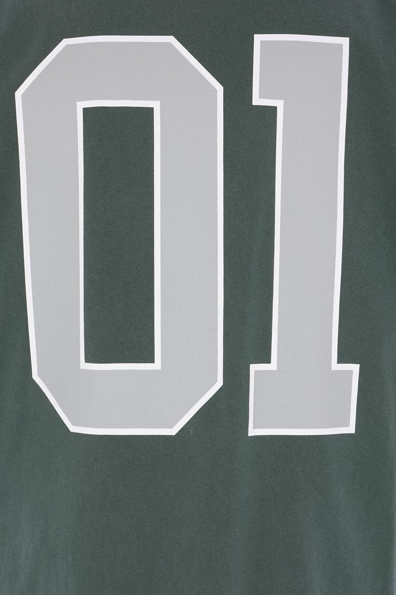 Balenciaga oversized t-shirt crafted from dark green cotton jersey, featuring embroidered basketball motif on the front and back. Designed with a crew neckline, short sleeves, and straight hem.