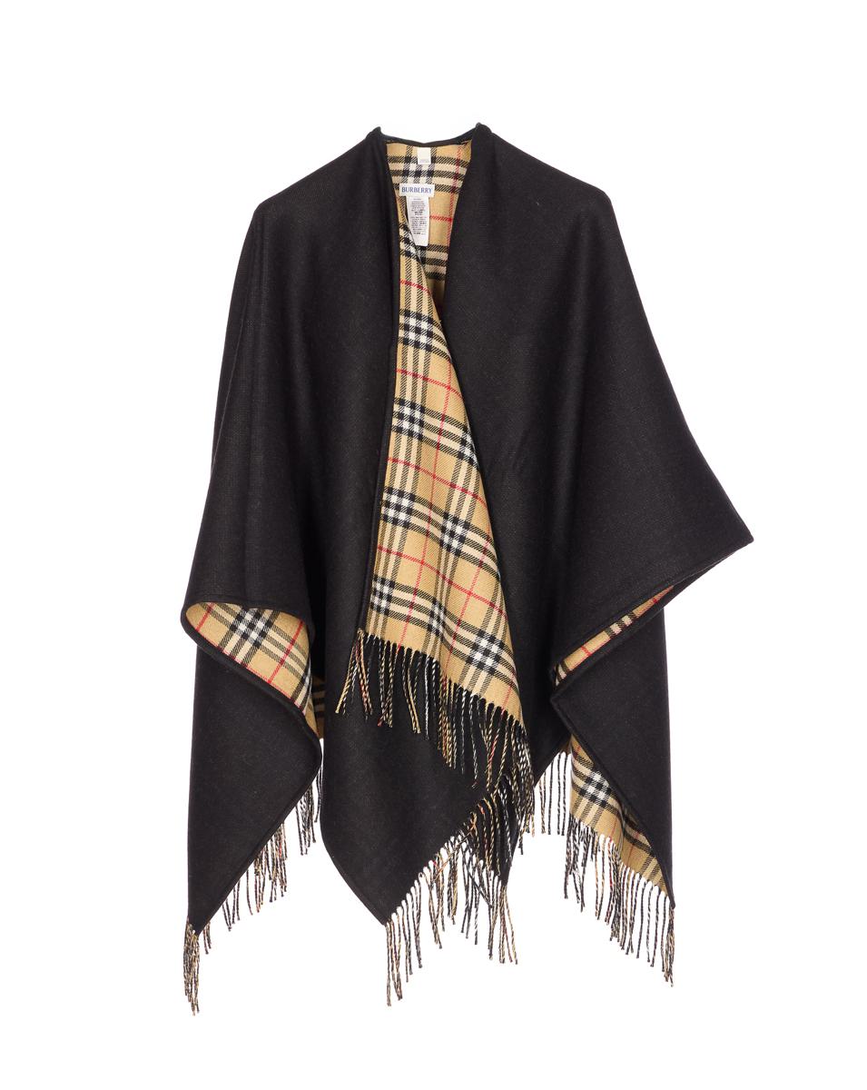 Burberry Black Cape, Reversible Model, Check Motif, Fringes At Bottom, UNI SIZE