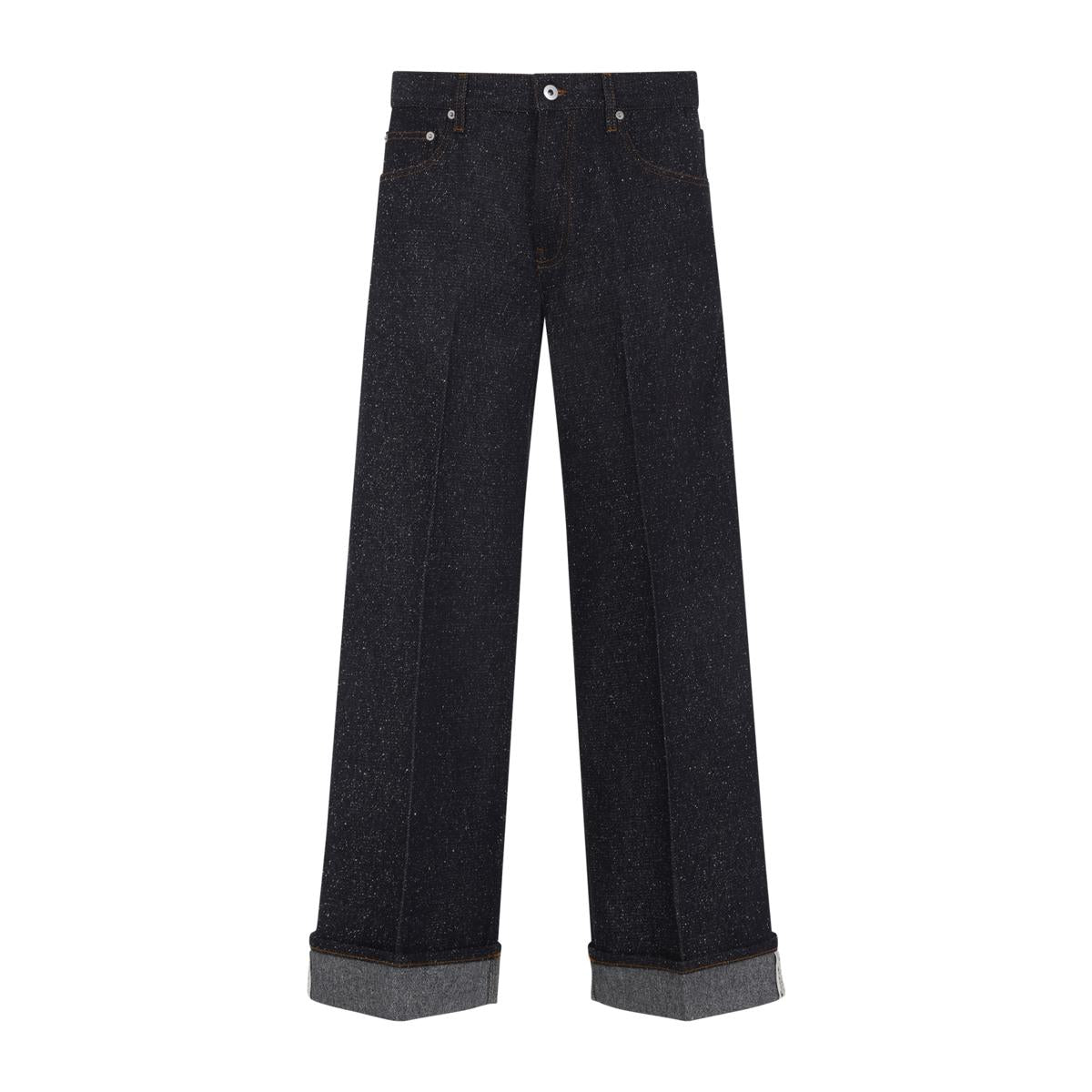 Burberry Indigo Cotton Pants. Crafted from indigo blue cotton-blend denim, mid-waist, belt loops, 5-pocket design, front concealed button fastening, straight leg, turn-up edges with branded canvas detail.