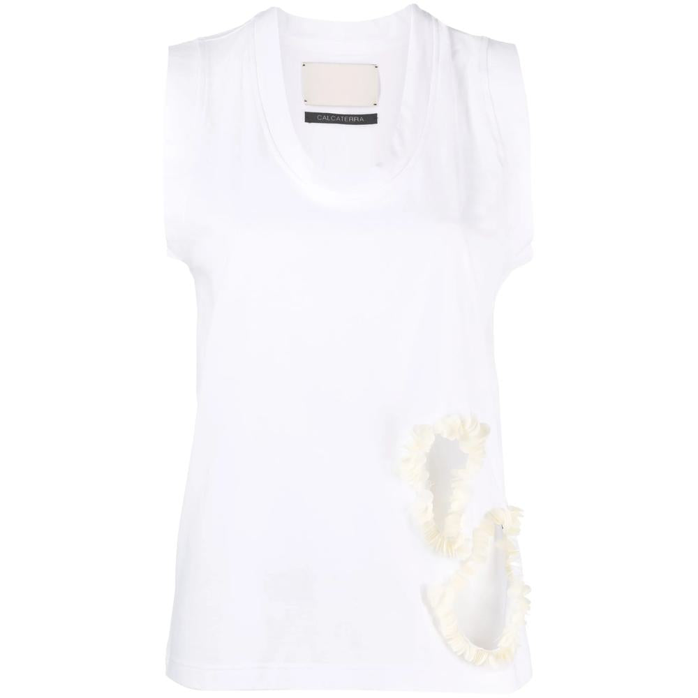 Optical white cotton jersey knit cut-out detailing u-neck sleeveless straight hem