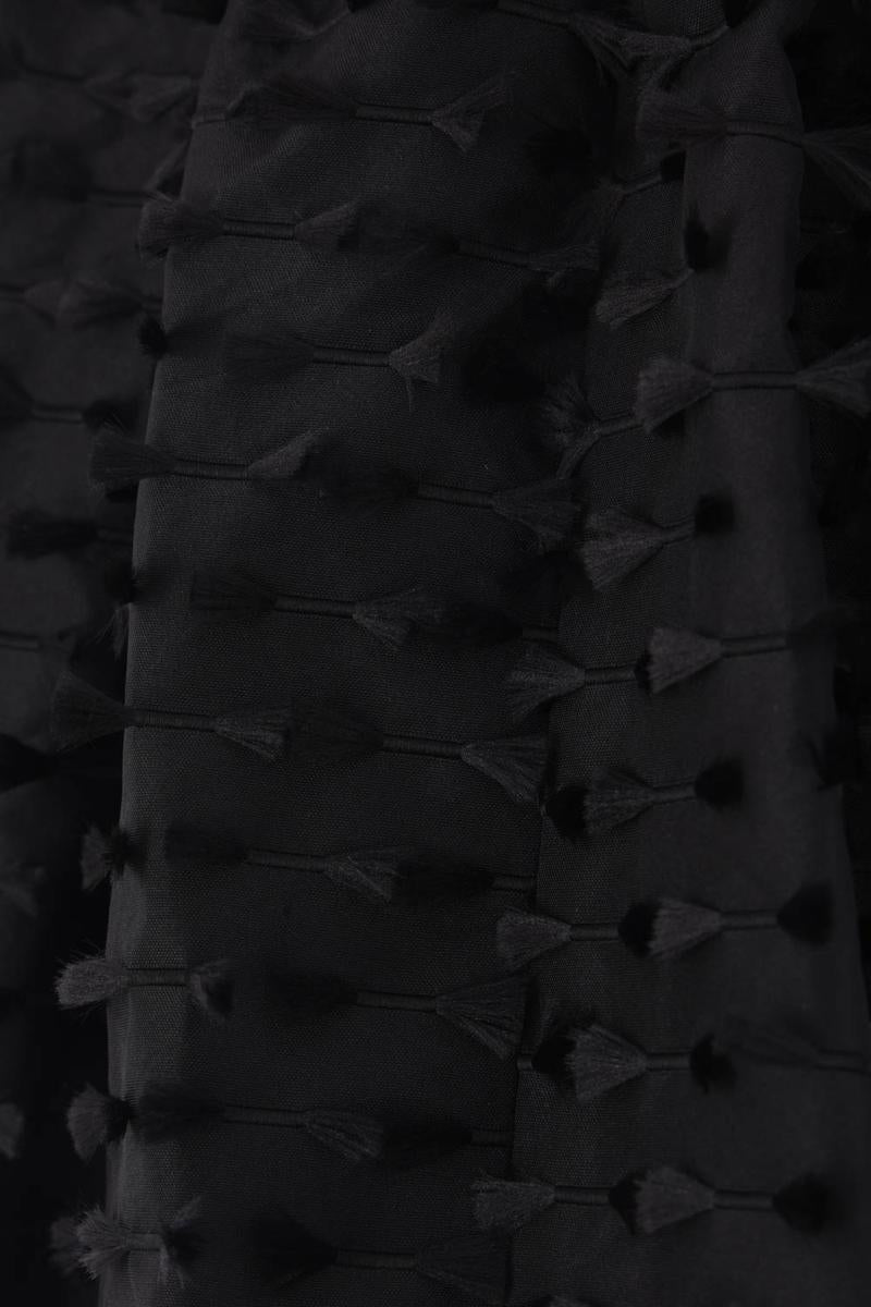 Cecilie Bahnsen top made of black Fiamma Fil-Coupé fabric. Featuring a straight neckline, thin straps, zip closure at the back, and a peplum hem.