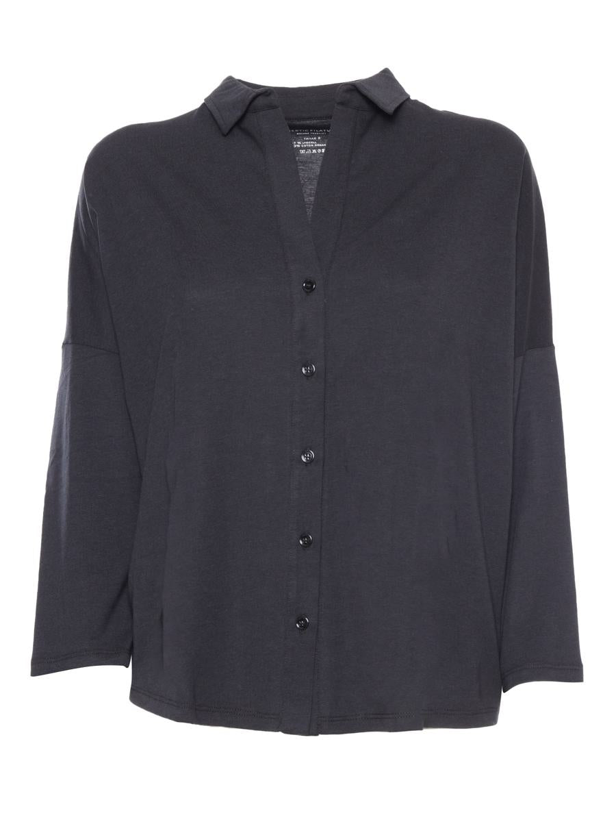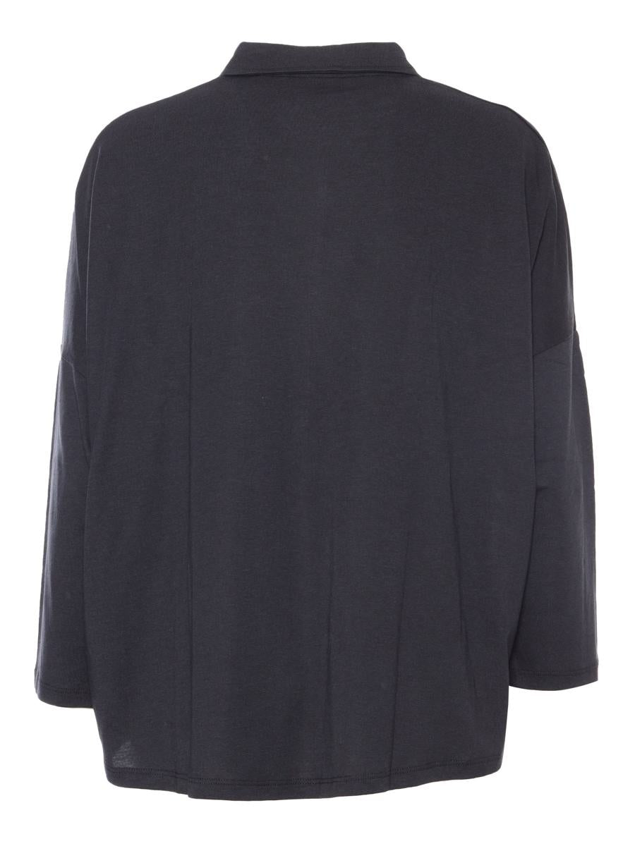 Black t-shirt Black lyocell and cotton shirt with classic collar, front buttons, normal fit.