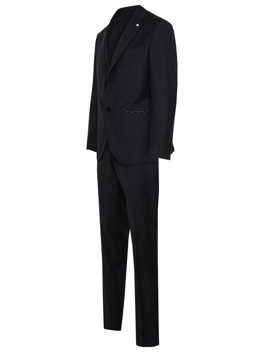 Regular fit, jacket with single-breasted closure, front welt pockets, small breast pocket, rear slits, trousers with two side pockets, button and zip fastening, belt loops, two back pockets with button