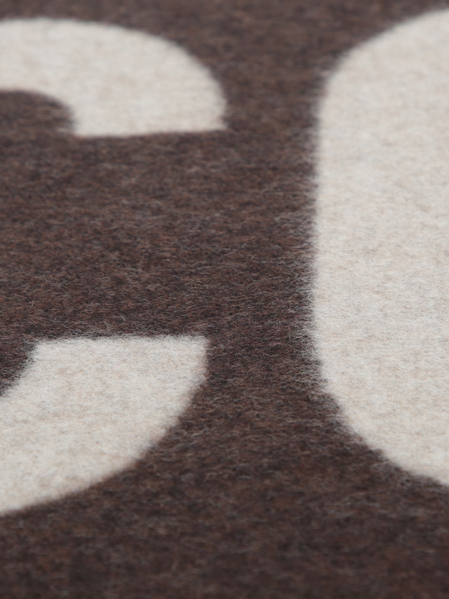 Wool scarf with fringes. Contrast logo design. Wrap-around style.