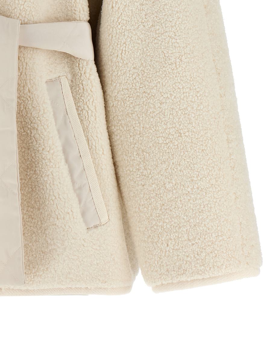 Capperi' sheepskin jacket with quilted nylon insert on the front, suede effect fabric lining, hood, high neck, front snap button closure, pockets, long sleeves, removable belt